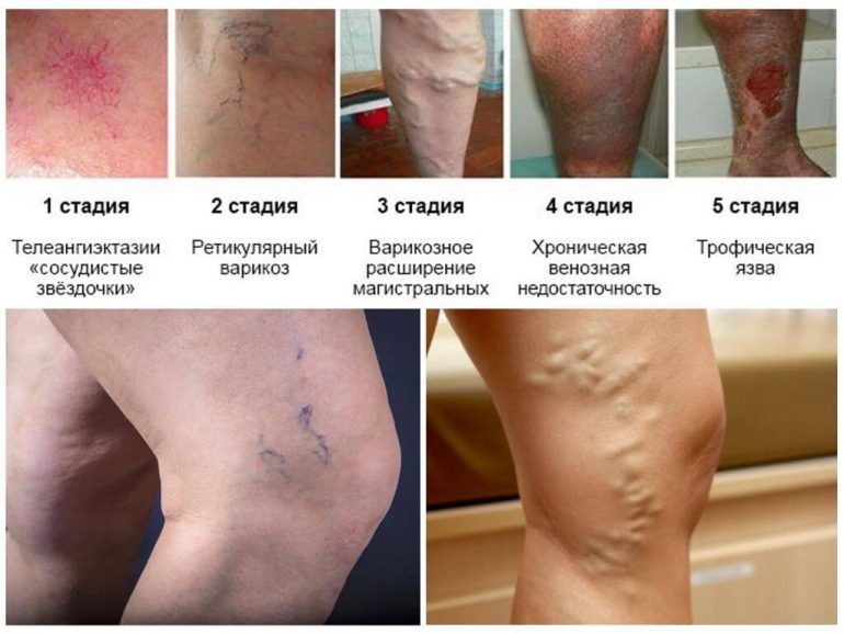 Варикозне розширення вен нижніх кінцівок розвивається поступово. Набір симптомів цієї судинної патології характеризується стадійним перебігом. У класифікації виділяють такі стадії варикозу нижніх кінцівок: