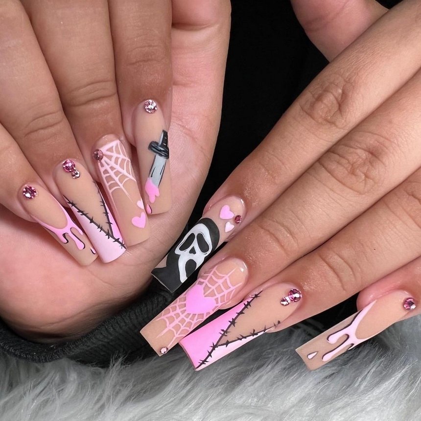 1996 року американський слешер режисера Уеса Крейвена справив фурор. До кінця фільму глядачі не могли здогадатися, хто ж ховався під знаменитою маскою привида-вбивці. До речі, у 2022 році виходить п'ята частина франшизи, тож такий манікюр буде неймовірно актуальним.