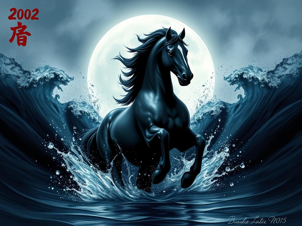 За східним календарем 2002 рік проходить під знаком Чорного Водяного Коня. Це сьомий знак китайського гороскопу. Він розпочався 12 лютого і був завершений 31 січня 2003 року. Тварина символізує світло, сонце та непомірну працю. Водна стихія надає м’якості. Чорний колір спрямовує до знань. Східному році Коня відповідає зодіакальний знак Близнюків.