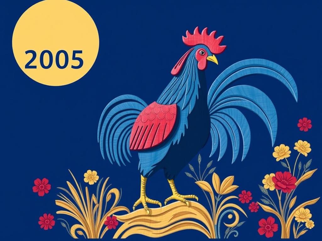 Відповідно до східного календаря 2005 – рік Синього Дерев’яного Півня, прямолінійного, самовпевненого та працелюбного, з одного боку, і пихатого, запального, з іншого. У слов’янському календарі цей рік вважається часом Півня, що кричить. У будь-якому разі птах цей войовничий, що не могло не позначитися на характерах людей, народжених у 2005 році.