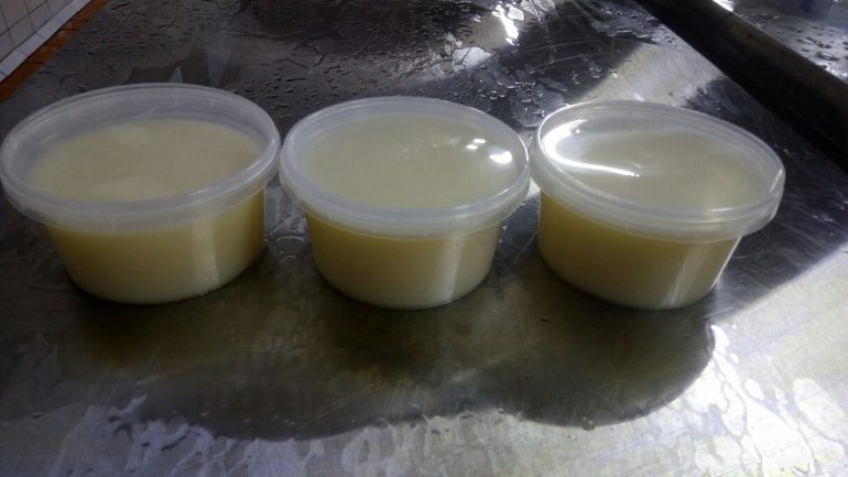 - Другий. Виготовляється з сала. Має каламутний колір і характерний присмак.