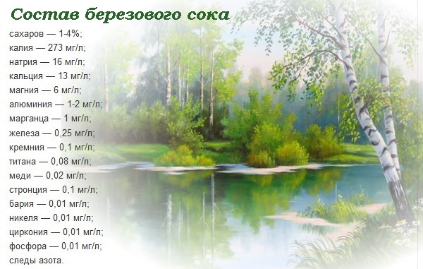 Увага! Вхідні до складу березового соку вітаміни і мінерали допомагають зберегти здоров’я і хороше самопочуття.