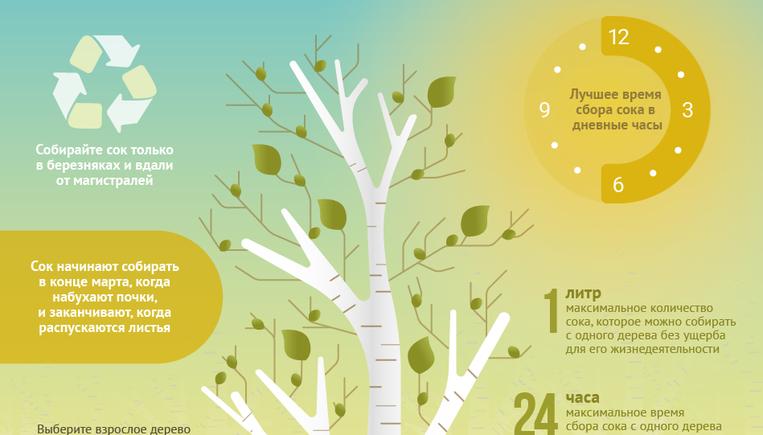 Щоб березовий сік приносив користь, його збирають з квітня по травень. Напій популярний в Україні, а також Північному Китаї і Скандинавії. Смак має схожість з джерельною водою. Однак суттєва концентрація натуральних цукрів надає соку деревні нотки.