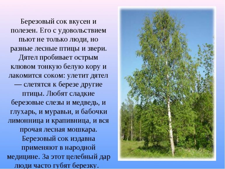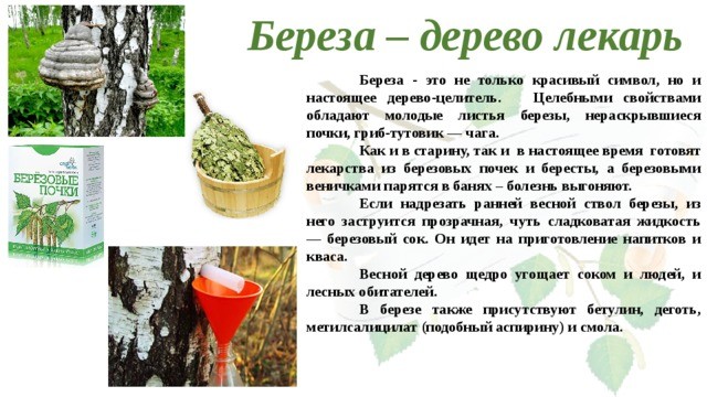 Бруньки, листя і сік берези використовуються в лікувальних цілях не одне століття. Користь і шкода березового соку обумовлені входять до його складу елементами. Рідина виділяється при надрізі кори.