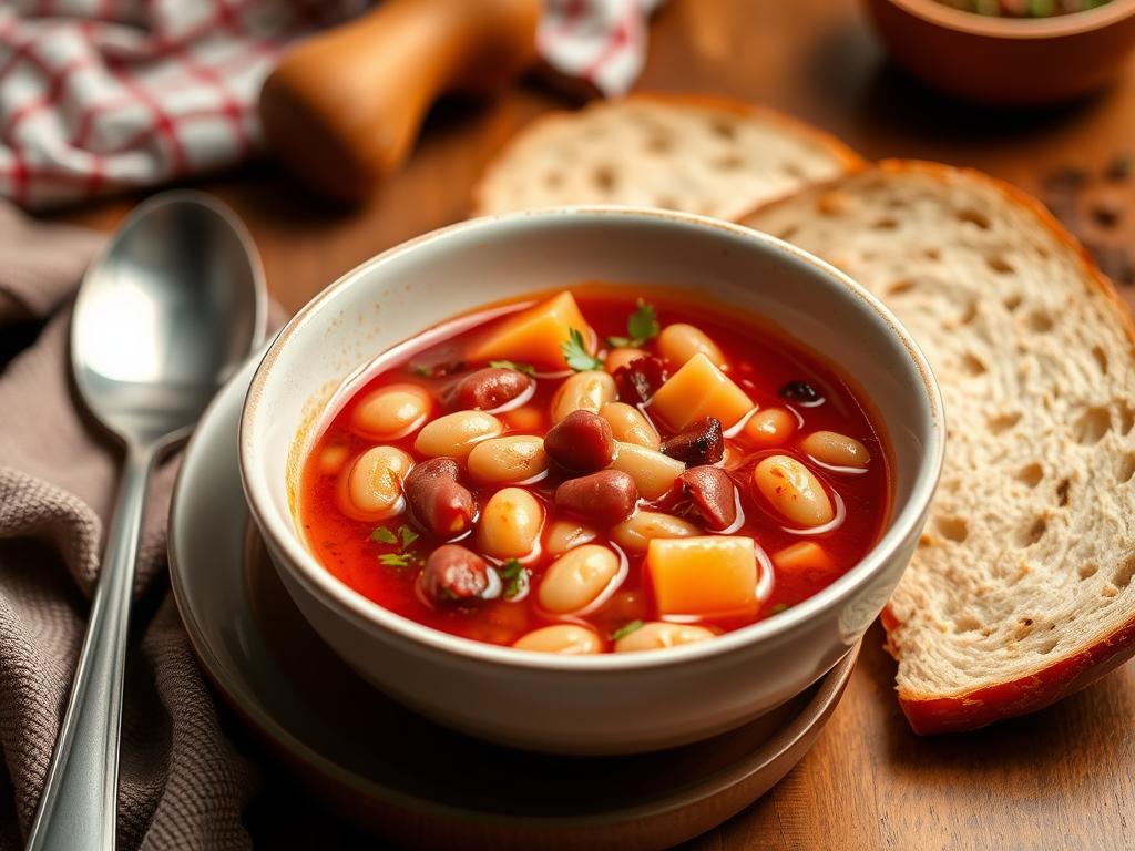 Борщ — це унікальна частина української кулінарної спадщини, яка поєднує в собі смак, аромат і традиції. Кожна хазяйка, безумовно, має свій рецепт борщу зі своїми смаковими нотками та додатковими інгредієнтами. Пропонуємо вам класичний рецепт, аби і ви знали, як варити борщ з квасолею та тішити свою сім’ю надзвичайно смачною стравою. Рецепт досить класичний, то ж повторити його буде просто.