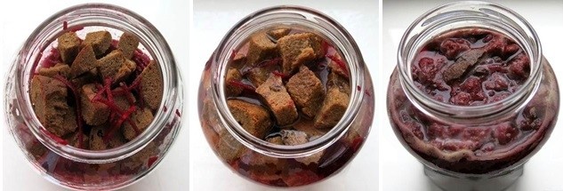 Для його приготування знадобиться тільки буряк і кип’ячена холодна вода. Коренеплід нарізають тонкими смужками або подрібнюють на тертці, закладають у 3-літрову банку до половини. Заливають водою, не доливаючи 3-4 див. Ємність закривають тканиною і залишають в кімнаті до перших ознак бродіння – пінки на поверхні. Як тільки бродіння запущено, квас можна пити.
