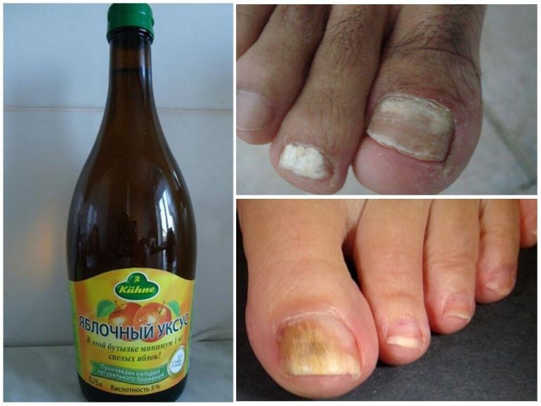Позбутися нігтьового грибка на ногах допомагає звичайний столовий оцет. Антигрибкова дія заснована на тому, що кислота денатурує білкові структури мікроорганізмів, що призводить до їх загибелі.