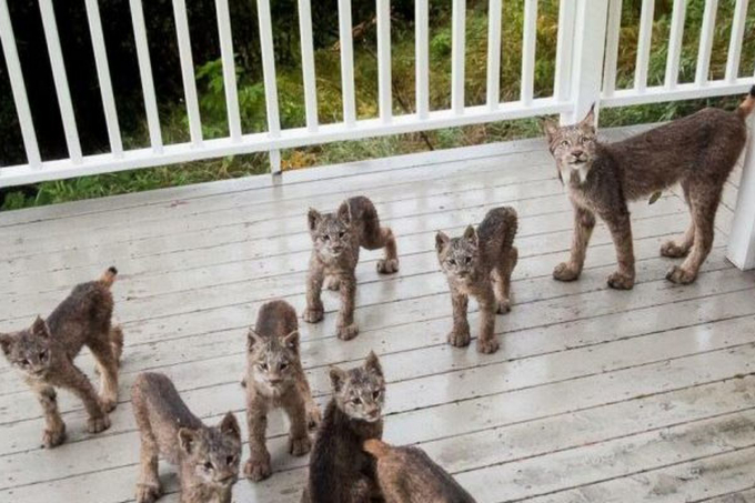До чоловіка, що проживає на Алясці навідалися досить дивні гості — з ранку він виявив на своєму ґанку сімох диких рисей, мами і дитинчат, інформує w2w.com.ua.