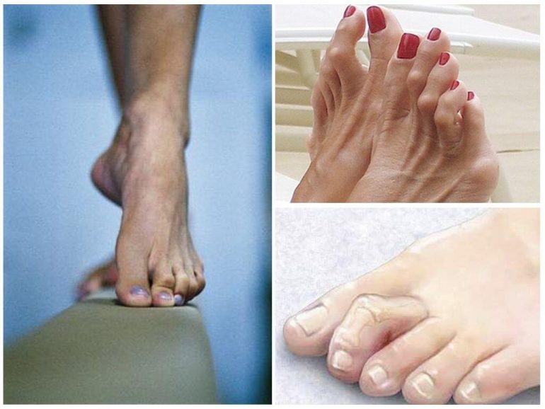 На фото показана деформація другого пальця лівої ступні. Таке викривлення часто виникає як наслідок вальгусної деформації великого пальця. Найчастіше уражаються 2–4 пальці. Відзначається розгинання в плюснефаланговому суглобі та згинання в міжфалангових з’єднаннях. Сухожилля постійно знаходяться в натягненому стані.