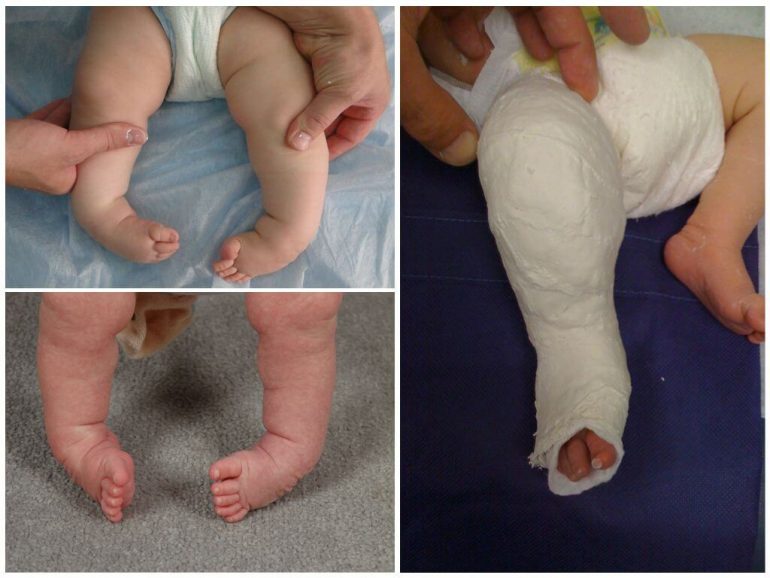 Лікування клишоногості починають із неонатального періоду. На початковому етапі застосовують гіпсування, фізіотерапію та лікувальну фізкультуру. Використовується метод раннього функціонального лікування: на стопи накладають фіксуючі тутори з полівіка, а при круговій гіпсовій пов’язці від стегна з тильної сторони залишають клиновидний зазор для спеціальних підкладок.