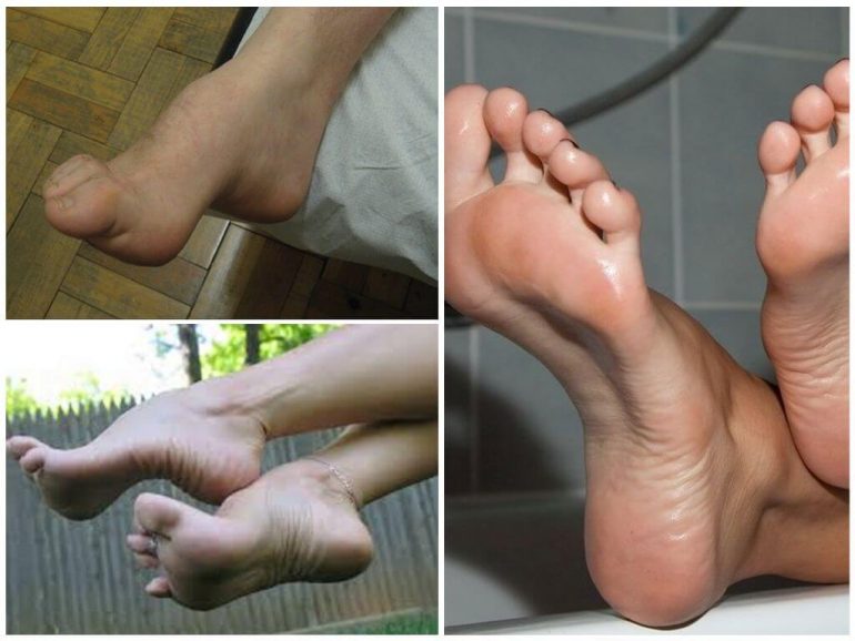 На фото видно зовнішній вигляд порожнистої стопи та молоткоподібних пальців. У етіології цього виду деформації часто лежать перенесений поліомієліт, мієлодисплазія, сирингомієлія, спастична форма ДЦП. Характерні високі поздовжнє й поперечне склепіння, внутрішній поворот задньої частини ступні та зовнішній — передньої.