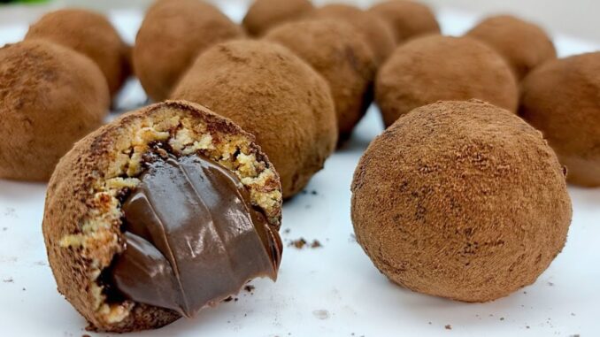- Щоб зробити цукерки з начинкою, з маси робимо коржик, всередину кладемо трохи шоколадної пасти. Обвалюємо в какао.