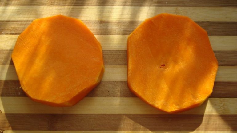 Він залежить від сорту, але якщо зсередини овоч насичено-помаранчевий, то значить, в ньому багато вітаміну А. Такий плід буде особливо корисний для зору, шкіри і волосся.