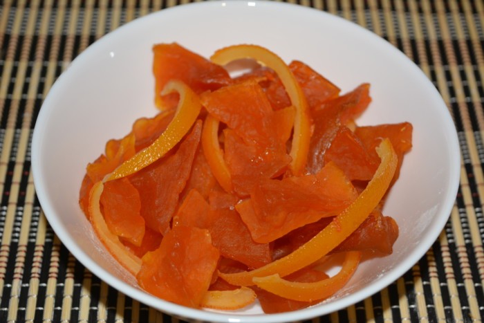 - 200 г натертої на тертці гарбузової м’якоті змішують з 50 г розпареного і нарізаного родзинок;