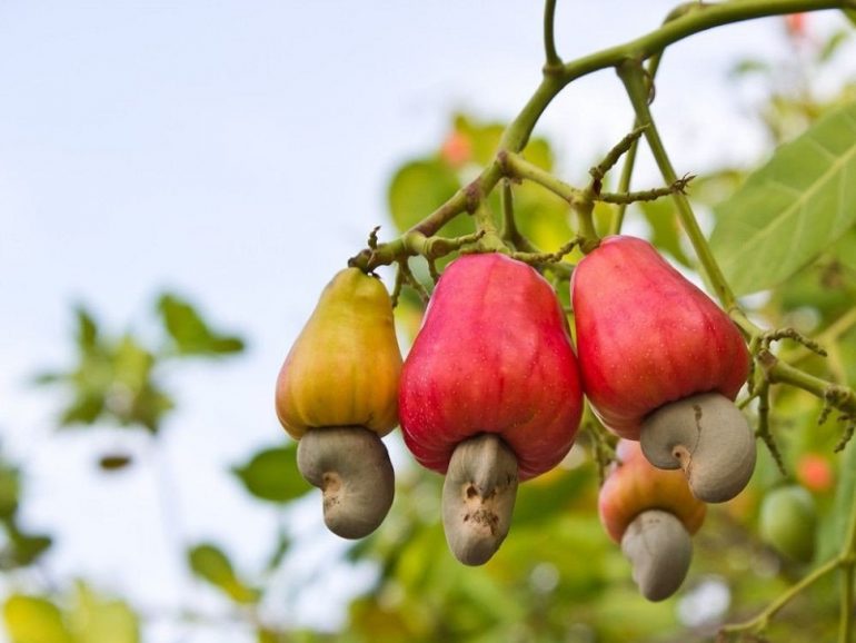 Кешью – вічнозелене дерево родом з Бразилії. Найближчі родичі рослини – манго, фісташкове дерево і отруйний плющ.