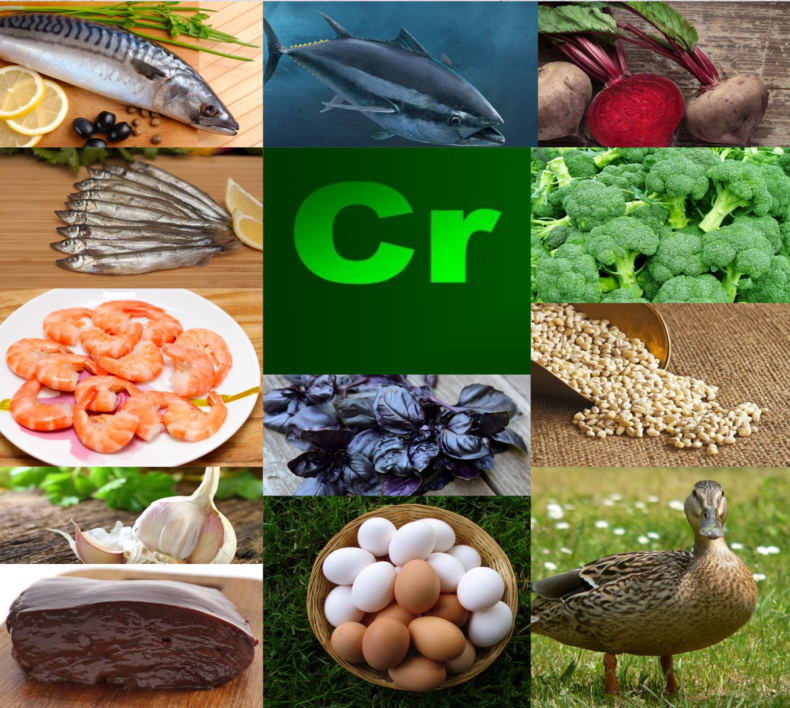 Хром міститься в продуктах харчування, однак його концентрація залежить від багатьох факторів. Мікроелемент сприяє зниженню ваги і набору м’язової маси. Речовина забезпечує адекватне функціонування органів і систем, що вказує на необхідність вживання продуктів з його наявністю.