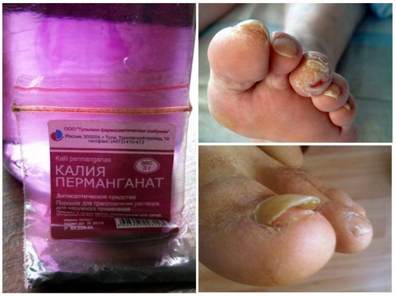- Марганцівка не проникає в уражені грибком нігті і не забарвлює їх.