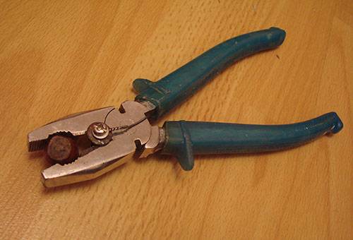 Плоскогубці перед обробкою, необхідно ретельно вимити від бруду, щоб вона не залишилася на ядрі. Потім взяти інструмент в праву руку, закріпити горішок кусачками і різко натиснути. Щоб шкаралупа не розлетілася в різні боки можна лівою рукою закрити місце розташування плода.
