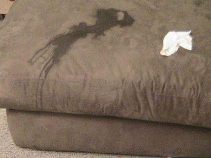 - якщо пляма від сечі свіже, то далі варто скористатися вологою тканиною і видалити залишки сечі й соку з поверхні оббивки меблів;
