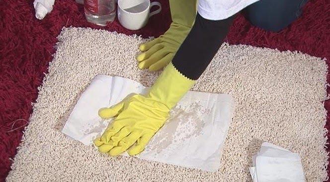 - якщо пляма свіже, то всю вологу з нього важливо прибрати, скориставшись паперовим рушником або серветкою;
