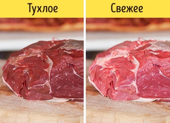 Щоб отримати готове до приготування та якісне м’ясо, потрібно вибирати з свіжих, а не заморожених продуктів. Колір яловичини повинен бути насиченим, без вкраплень. Коричневий відтінок говорить про несвіжості або старому тварину. Жир не повинен бути жовтим, а також дуже щільним. Плям і кірок бути не повинно, а поверхня повинна бути пружною. Не можна купувати мокрий або продукт в крові. Ямка, яка залишається на поверхні при натисканні, повинна відразу вирівнятися.