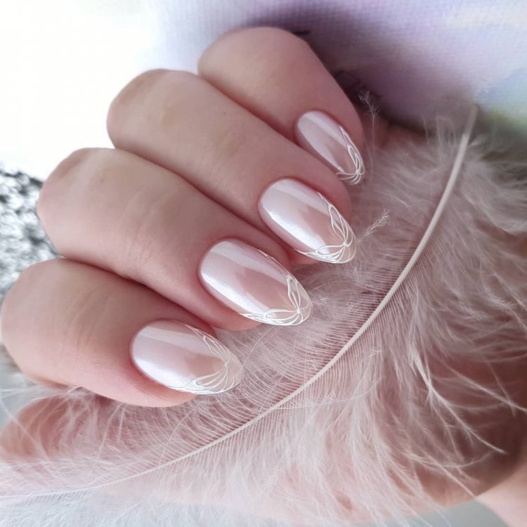Білий манікюр з пером