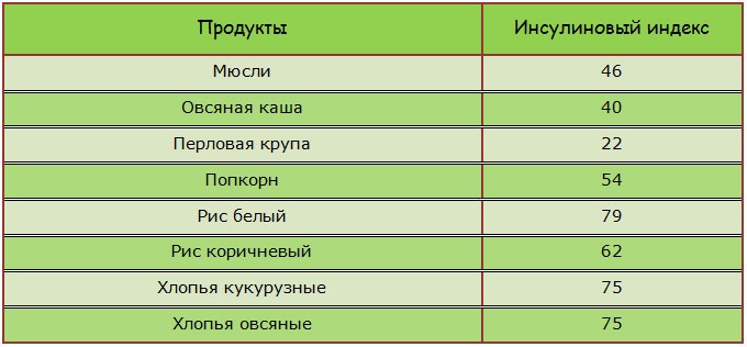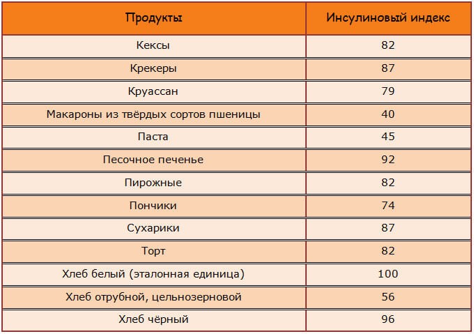 - Високий інсуліновий індекс: 81-160 — хлібобулочні і кондитерські вироби, випічка, молочна продукція, картопля, бобові, солодощі.