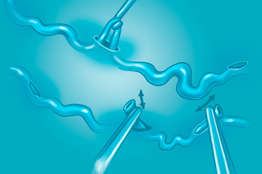На першому етапі роблять розмітку варикозних вузлів, обробку антисептиком і місцеву анестезію. Після цього виконують невеликі проколи на шкірі і за допомогою спеціальних гачків виводять уражену вену.