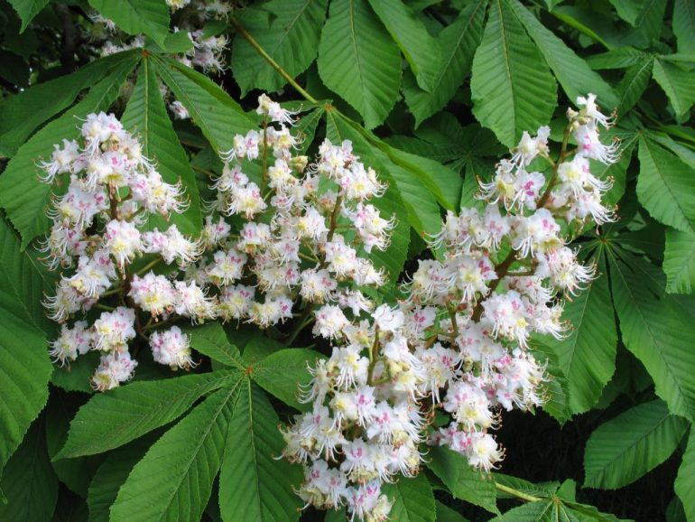 - кінський каштан цвіте рясно, суцвіття зібрані в подобу вертикальної свічки;