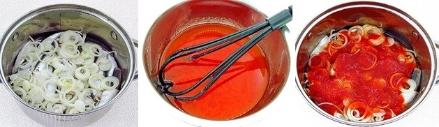 - Залити отриманим томатним соусом так, щоб він повністю її прикрив і заповнив простір в каструлі між нею.
