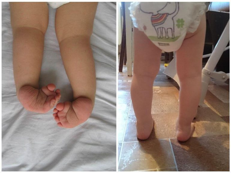 - Можливе перекручування кісток гомілки або явне недорозвинення стопи.