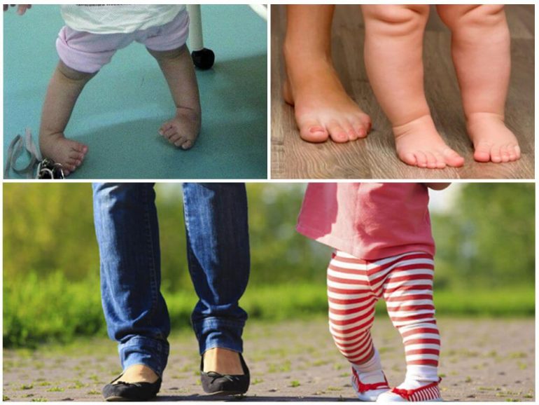 Пильні батьки можуть самостійно помітити ознаки клишоногості. Особливо помітні вони вранці одразу після пробудження, коли ноги розслаблені. Діагностичними є також відбитки босих ступень (носок повернутий всередину, сліди розташовані нерівно) або особливості ходи дитини (хитається, перевалюється, робить короткі кроки). Візуальні симптоми на фото зазвичай добре помітні.