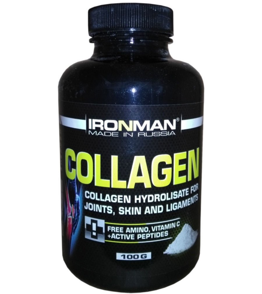 «Ironman Колаген C» – представник гідролізованого білка. Його випускають у банках по 60 і 100 капсул. Харчова добавка зміцнює зв’язки і усуває больові відчуття в суглобах. Її часто призначають людям, що займаються спортом або важкою фізичною працею.