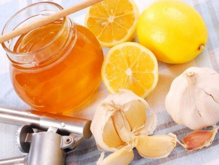 - 5 подрібнених зубчиків змішують з 5 перетертими лимонами;