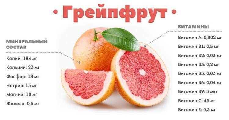Свіжовичавлений сік грейпфрута приносить користь організму: при калорійності 30-40 ккал на 100 г цей цитрус містить велику кількість корисних мінералів і вітамінів: