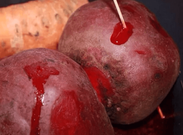 Важливо! Буряк накопичує шкідливі нітрати. На зрізі овоча, сильно забрудненої нітратами, будуть чітко видно товсті білясті прожилки.