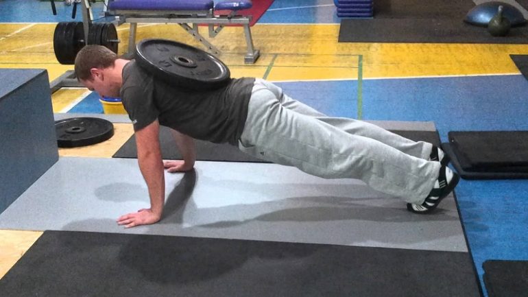 В даному випадку принесуть користь віджимання з обтяженням. Виконуються вони точно так само, як звичайні, але перед виконанням вправи потрібно покласти собі на спину млинці від штанги або будь-які інші важкі предмети, надіти навантажений рюкзак або спеціальні спортивні обважнювачі. Достатнім буде вважатися такий додатковий вага, при якому після 10-12 повторень трапиться «відмова» м’язів — при регулярних вправах мускулатура почне зростати.