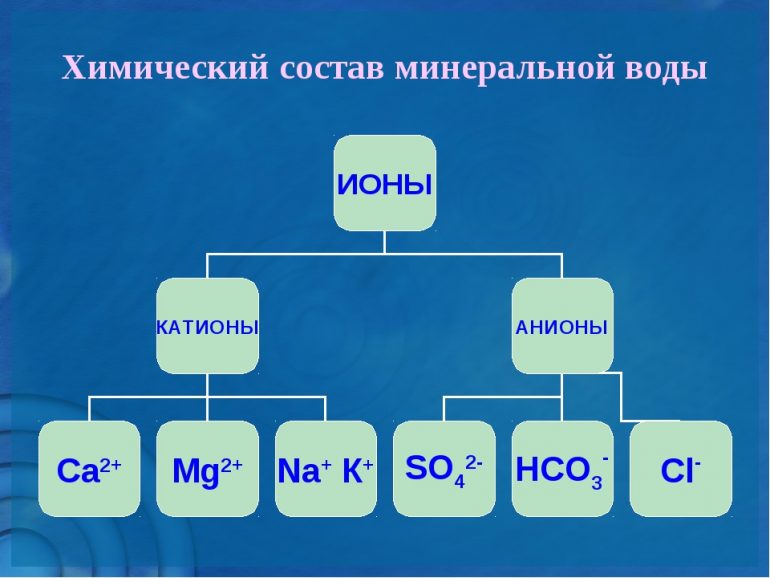 Лікувальні якості рідини, насиченого мінералами, визначаються її хімічним складом: