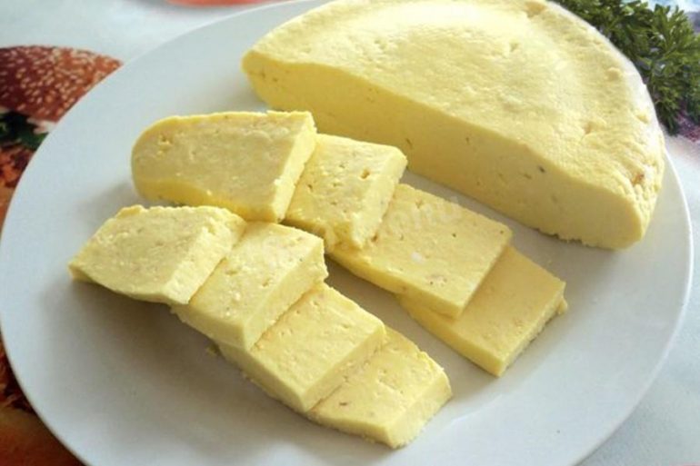 Пробувати його можна вже через пару годин, але краще почекати приблизно добу. Вихід кінцевого продукту з 2 л молока виходить близько 270-300 р. Якщо є бажання отримати пористий продукт, в сироватку перед виливанням на сито, додають 2-3 г соди.