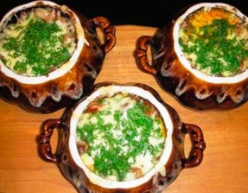 - Переважно готувати страву порційно, тобто в невеликих ємкостях. Їх ідеальний об’єм — приблизно 500 грамів. Якщо використовувати великий горщик, в результаті може вийти «суп», так і подача не вийде такою ефектною і оригінальною.