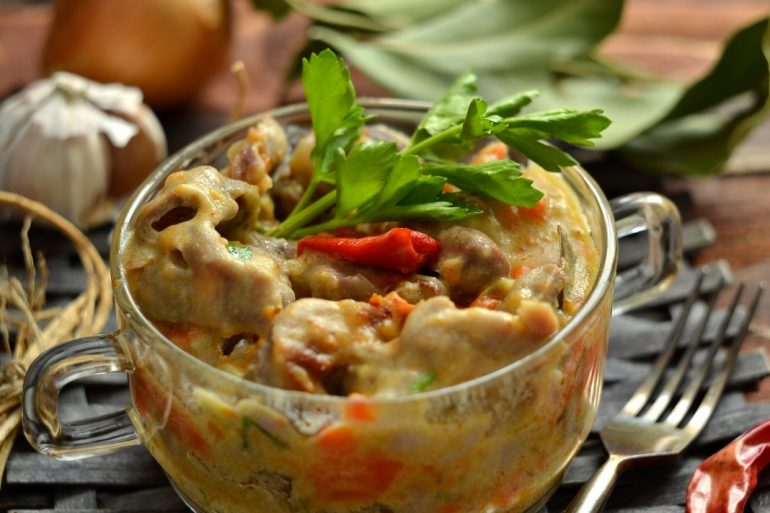 Тушковані курячі шлунки в сметані
