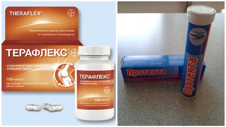 Для відновлення хрящової тканини застосовують хондропротектори. Їх призначають при перших ознаках подагри на строк до 6 місяців. Серед сучасних ліків цієї групи: Хондрофен, Протекта, Терафлекс і Терафлекс хондрокрем.