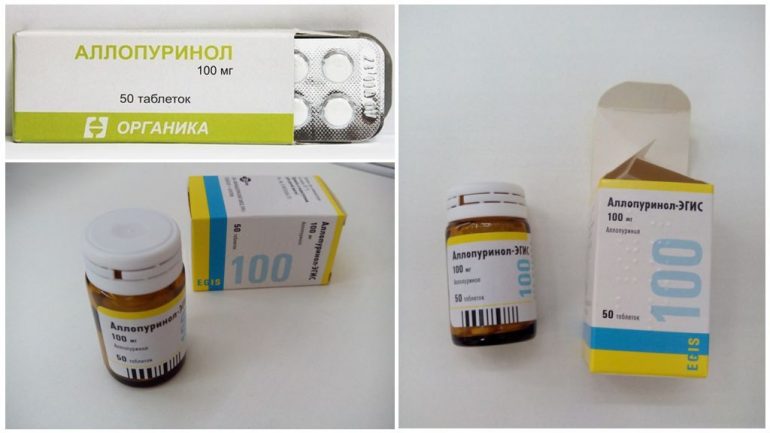 Це таблетки при подагрі на ногах, які пригнічують ферменти, що беруть участь у синтезі сечової кислоти. Внаслідок цього зменшується накопичення кислоти в крові та сечі, що запобігає утворенню нових відкладень і сприяє розчиненню старих уратних скупчень. Випускається Алопуринол у круглих таблетках по 0,1 і 0,3 г.