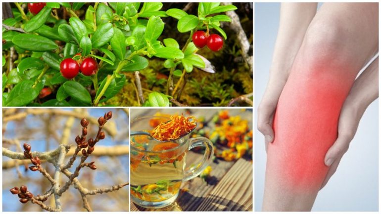 - Сушені квіти календули в суміші з подрібненою корою жостеру, березовим листям і хвощем, а також травою кропиви і сухоцвітом бузини.