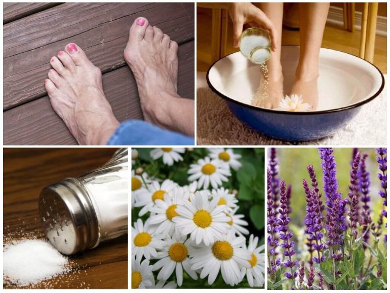 - 100 г квітів ромашки заварити в 10 л окропу, додати 200 г солі. Зачекати, поки розчин охолоне до комфортної температури, і тримати ноги в ньому 30 хвилин. Робити раз на день протягом 14 процедур; при потребі повторити через тиждень.