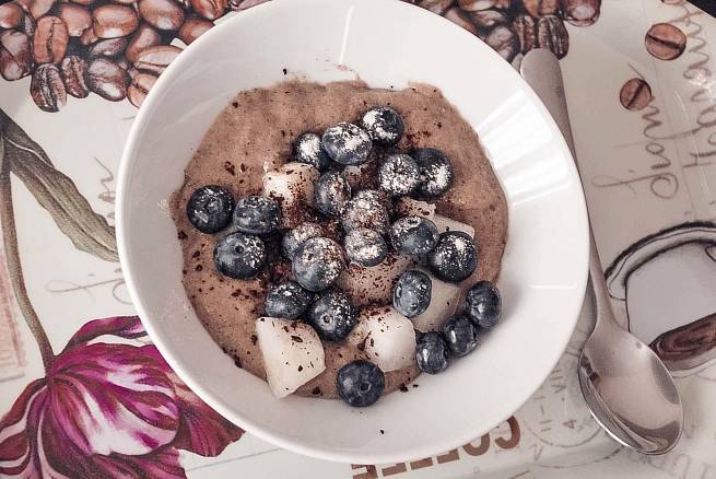 Після цього кашу можна їсти. При бажанні в неї додають інші фрукти, можна також посипати страву половинкою чайної ложки какао.