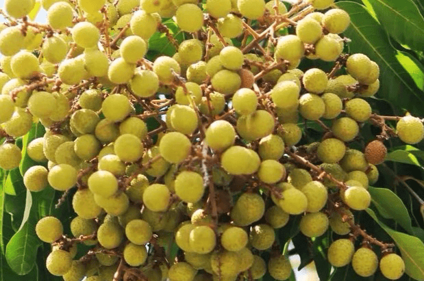 Лонган — це тропічний фрукт, нагадує за зовнішнім виглядом виноград (теж росте кетягами), але більше схожий на свого найближчого родича — лічі.