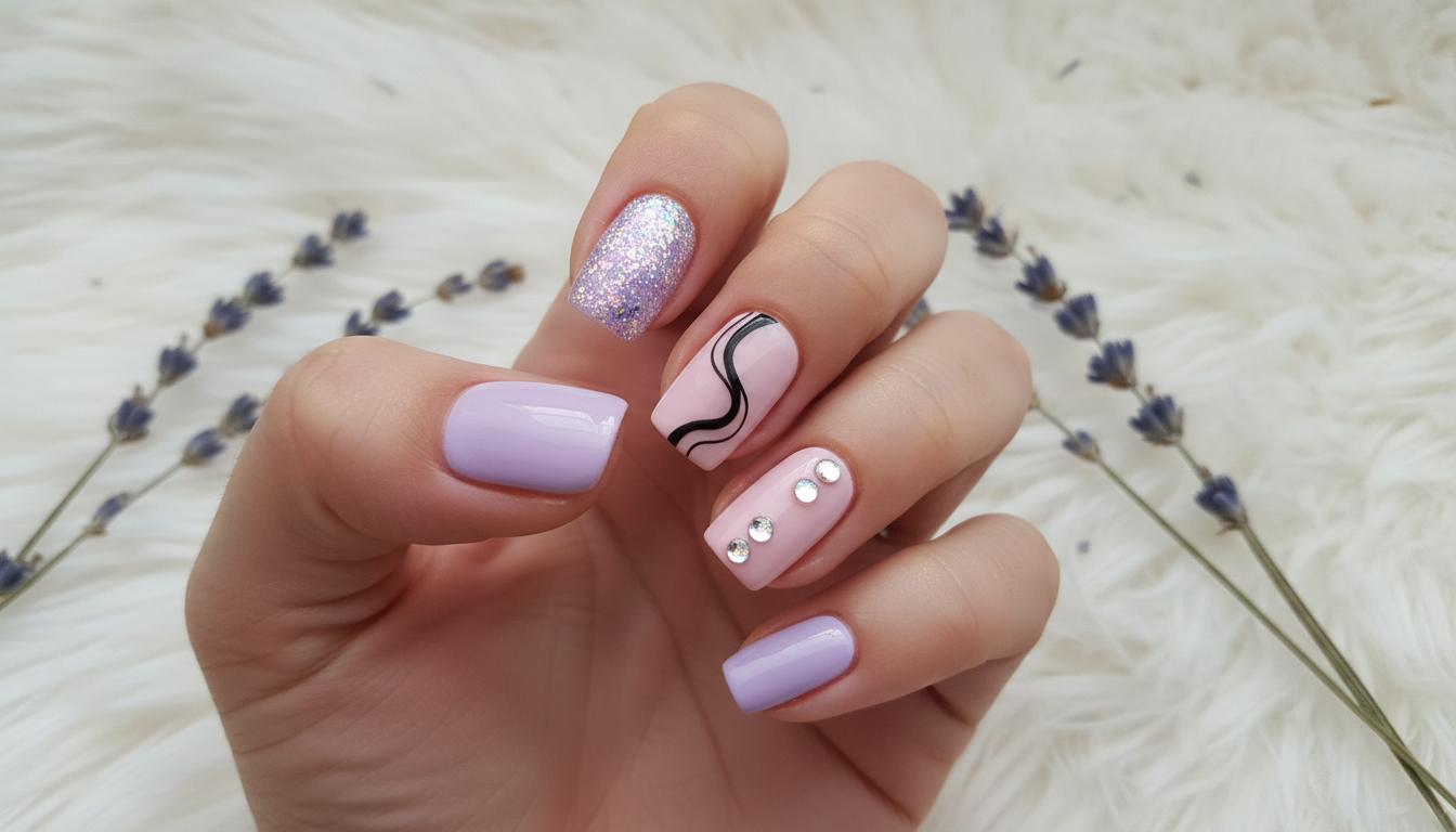 Лавандовая кошка маникюр