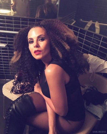 Каменських продемонструвала фанатам новий образ – гофровані кучері, макіяж smokey-eyes, чорний топ, колготи і ботфорти на шнурівці. А от спідницю співачка вдягнути забула.