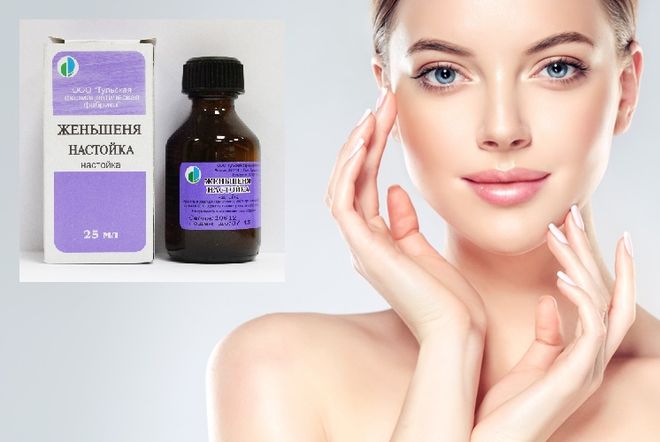 Для жінок корисні властивості настоянки женьшеню згодилися в косметології. Лікарська рослина благотворно впливає на обмінні процеси, покращує стан шкіри, відновлює клітини епідермісу, захищає від зневоднення і живить. Витяжка рослини активізує кровообіг по всіх органів і систем людського тіла, в тому числі шкіри. Входячи до складу кремів, прибирає вікові ознаки, проводить детоксикацію шкіри. Володіє регенеруючою, бактерицидну, тонізуючу властивостями.